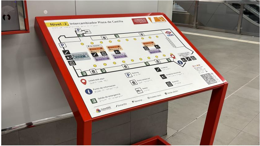 La Comunidad de Madrid ha iniciado en el intercambiador de Plaza de Castilla un proyecto piloto para mejorar la accesibilidad de personas con discapacidad visual, cognitiva o dificultades de comprensión. En concreto, el Consorcio Regional de Transportes de Madrid (CRTM) ha instalado un mapa háptico, que se lee mediante el tacto, y que proporciona la información necesaria para facilitar la orientación de los viajeros.